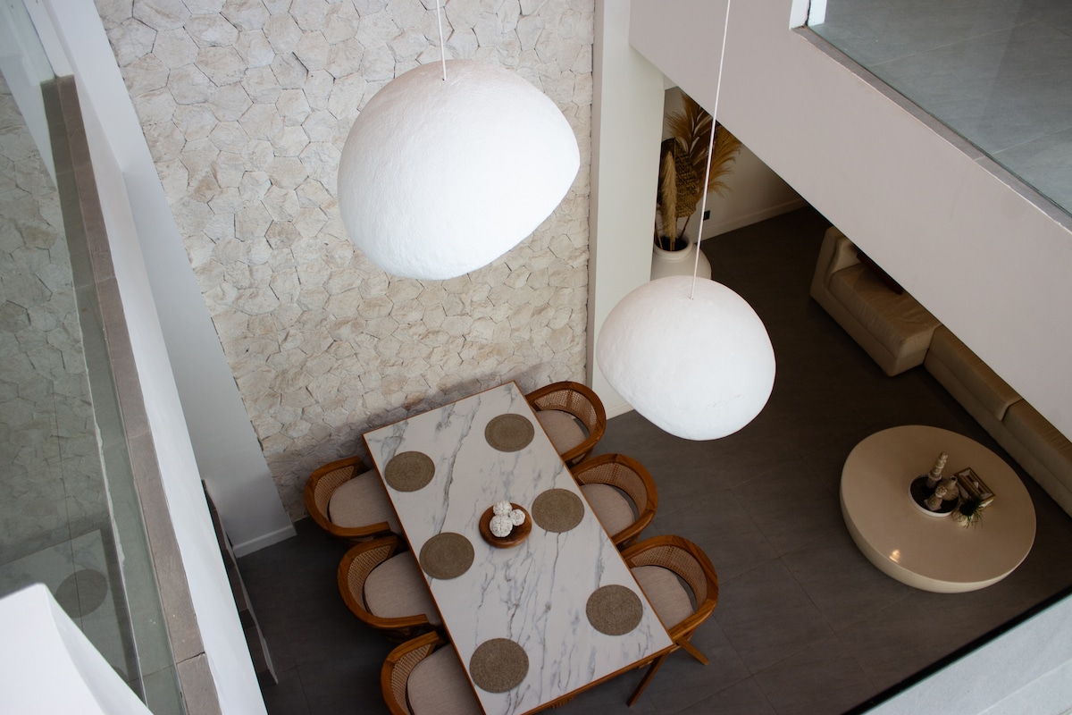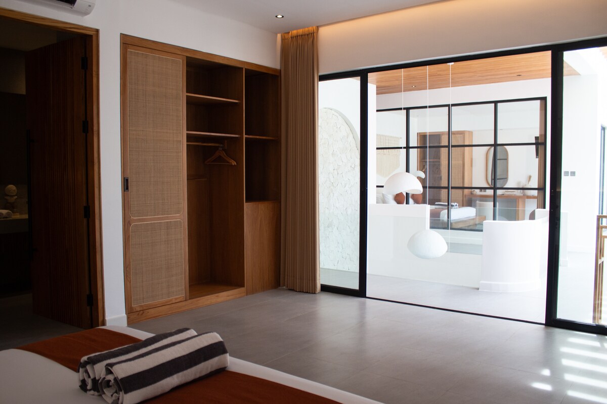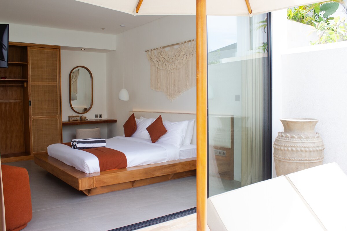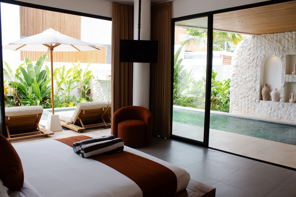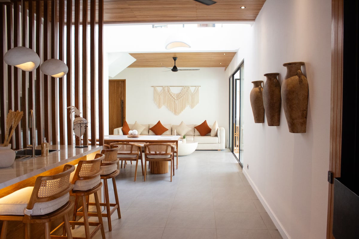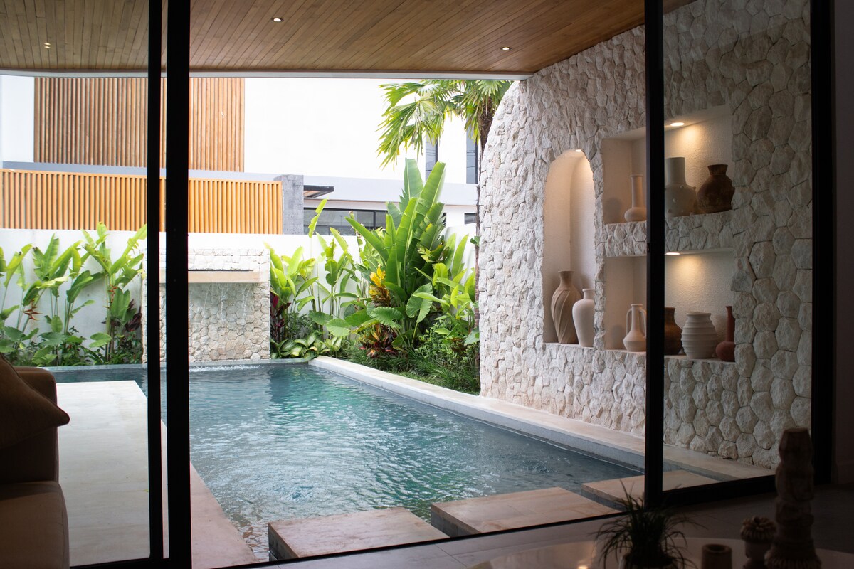 Villa Uluwatu is a beautiful three-bedroom home designed in a refined bohemian luxury style, blending natural materials, warm wood, and white stone. Soft tones of white and cream create a bright and elegant atmosphere. Enjoy the L-shaped pool with a cascading fountain and a cold jacuzzi. The villa also features a large upstairs terrace, with daily housekeeping and security included.